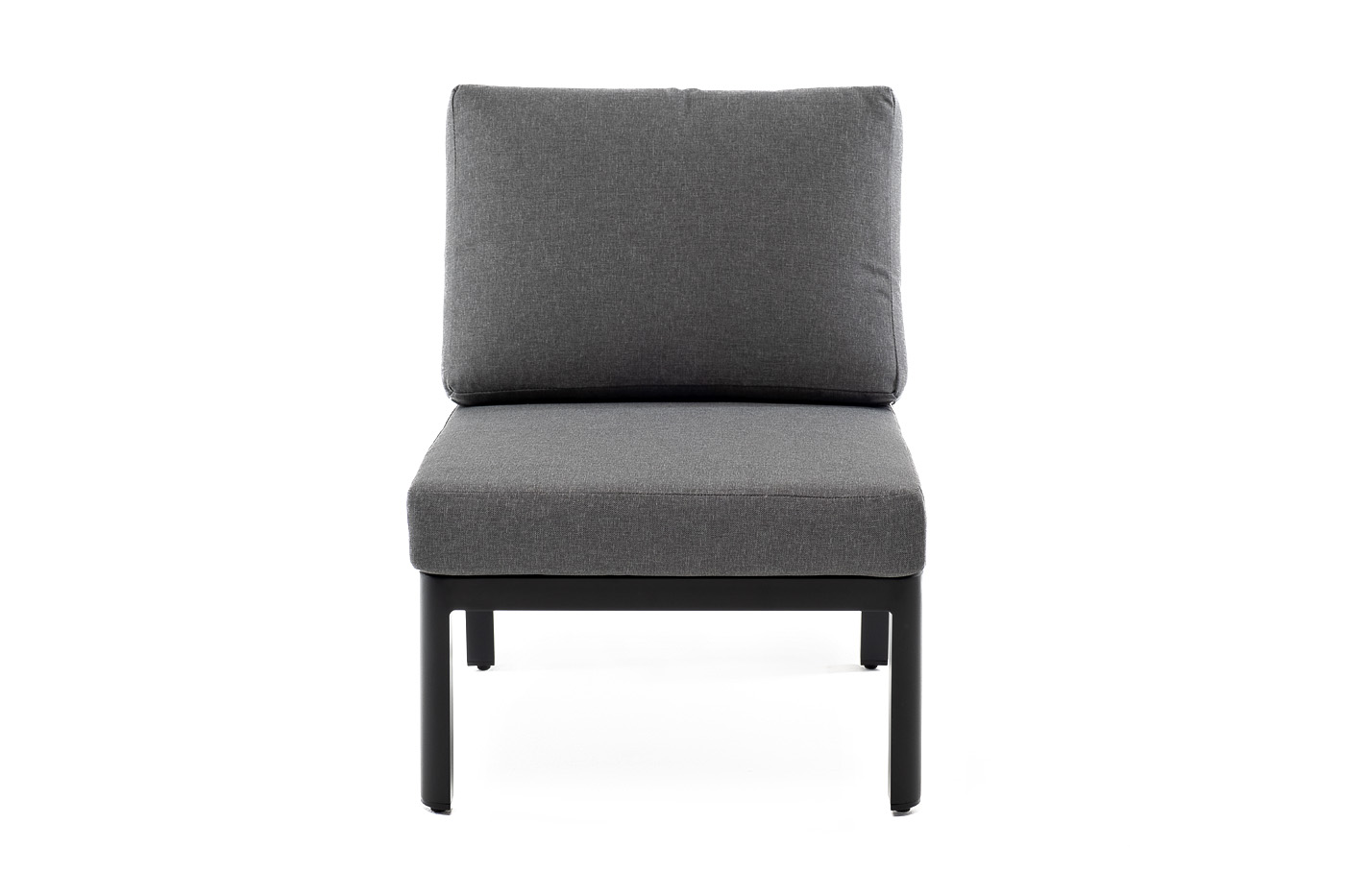 «Париж» модуль диванный центральный, алюминиевый каркас темно-серого цвета. В комплекте с подушками серого цвета со съёмными чехлами. Размер: 600×780×700 мм.